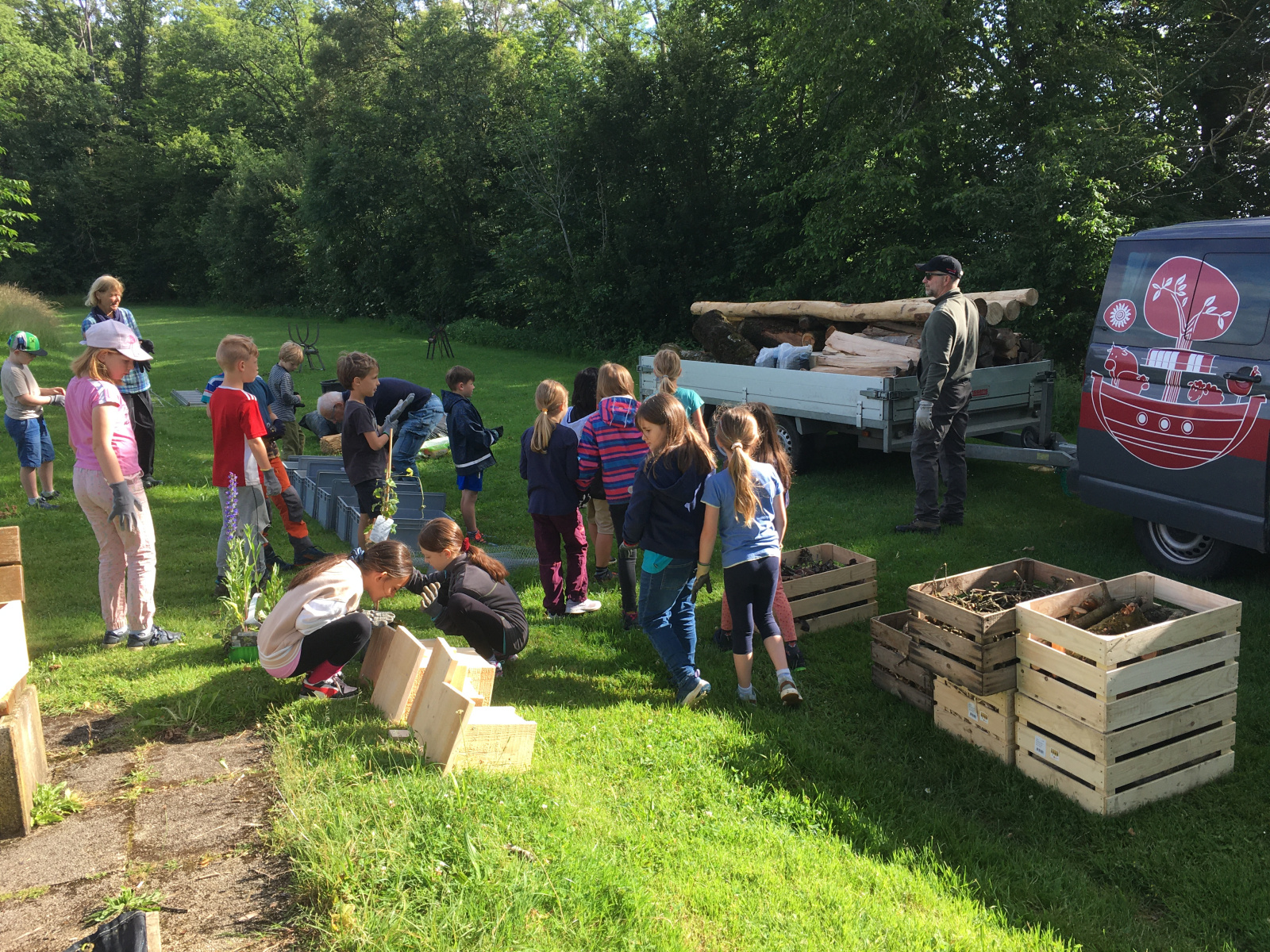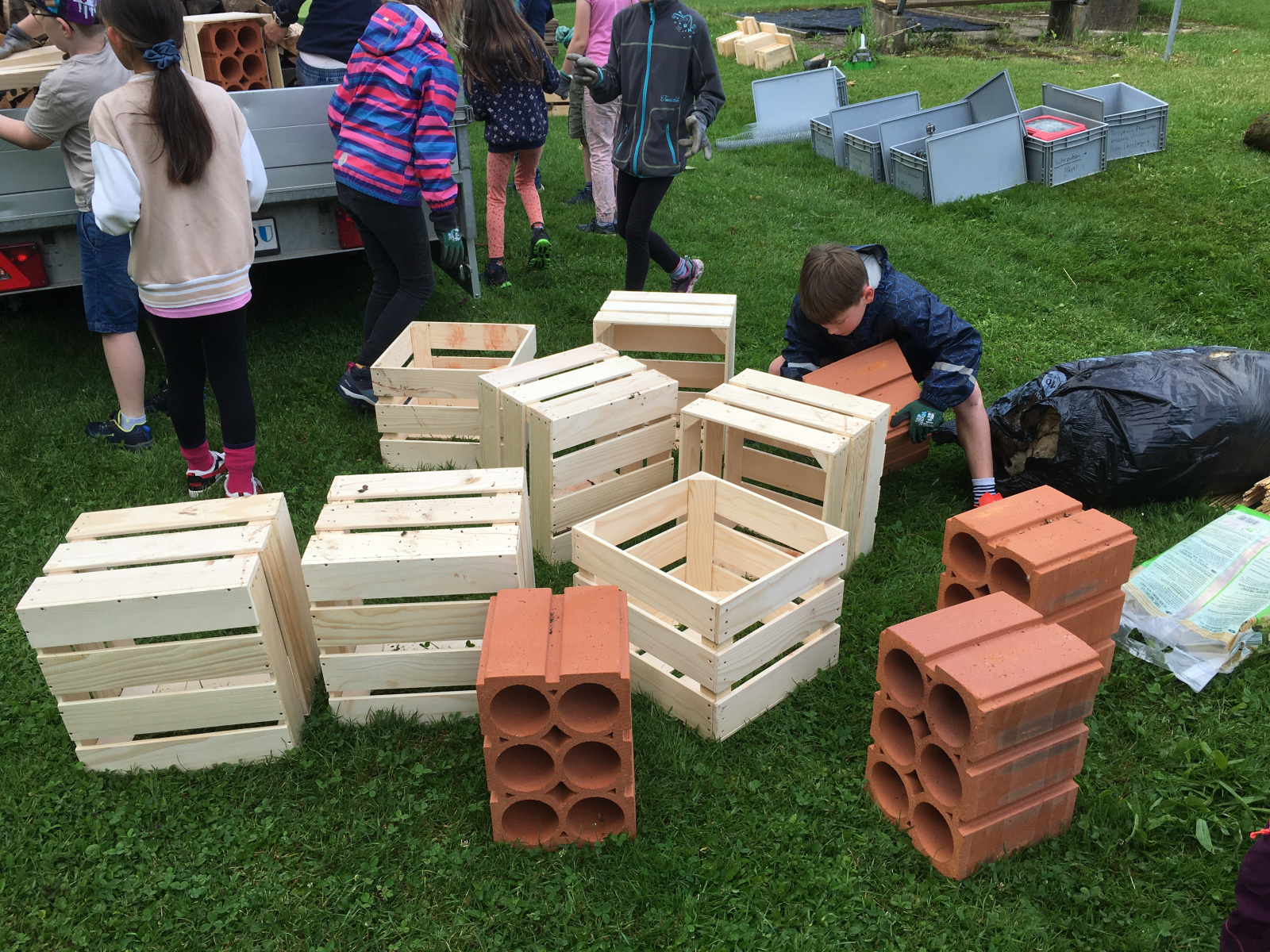 Unter Anleitung zweier erfahrene Mitarbeiter des Archehofs erstellten die Kinder unserer Schule einen Turm, der Lebensraum für verschiedenste Tiere auf mehreren Etagen bietet und damit die biologische Vielfalt fördert.