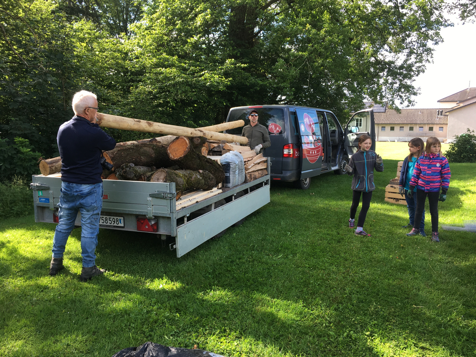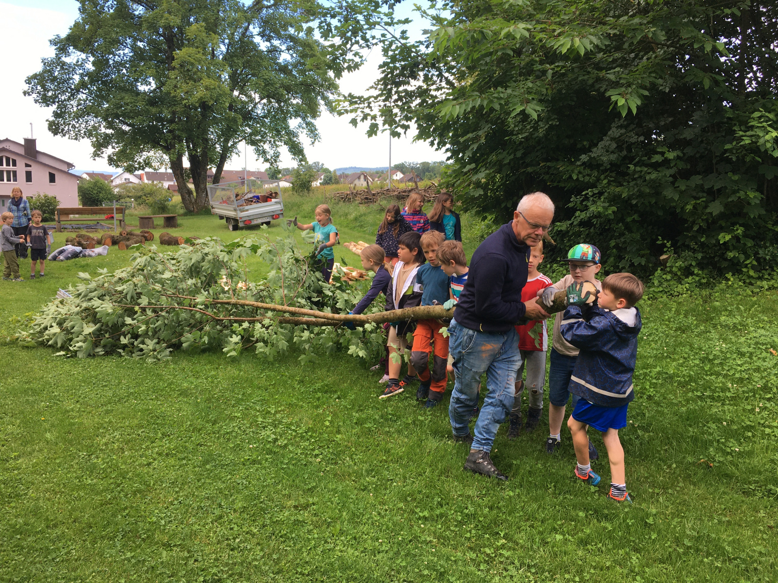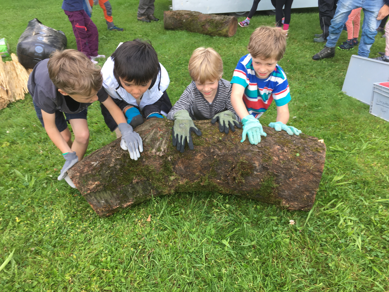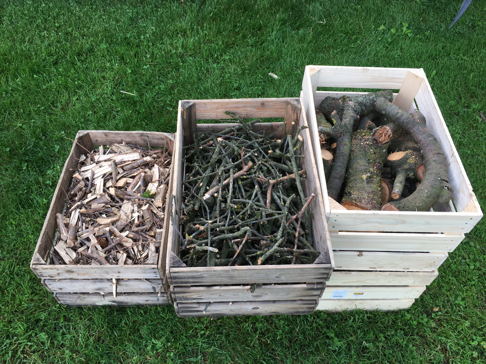 Die Kindergarten-Kinder sammelten im Wald Tannzapfen, Baumrinden und Altholz. Das in Holzharasse abgefüllte Material dient beispielsweise Vögeln für den Nestbau.